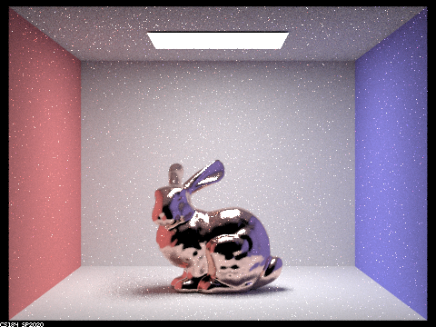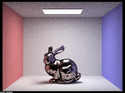 CBbunny_microfacet_cu.daerendered using cosine hemisphere sampling (default) and your importance sampling. The sampling rate should be fixed at 64 samples per pixel and 1 samples per light. The number of bounces should be at least 5. Briefly discuss their difference.