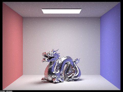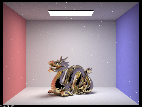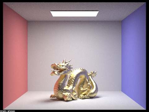 CBdragon_microfacet_au.daerendered with set to 0.005, 0.05, 0.25 and 0.5. The other settings should be at least 128 samples per pixel and 1 samples per light. The number of bounces should be at least 5. Describe the differences between different images. Note that, to change the , just open the .dae file and search for microfacet.